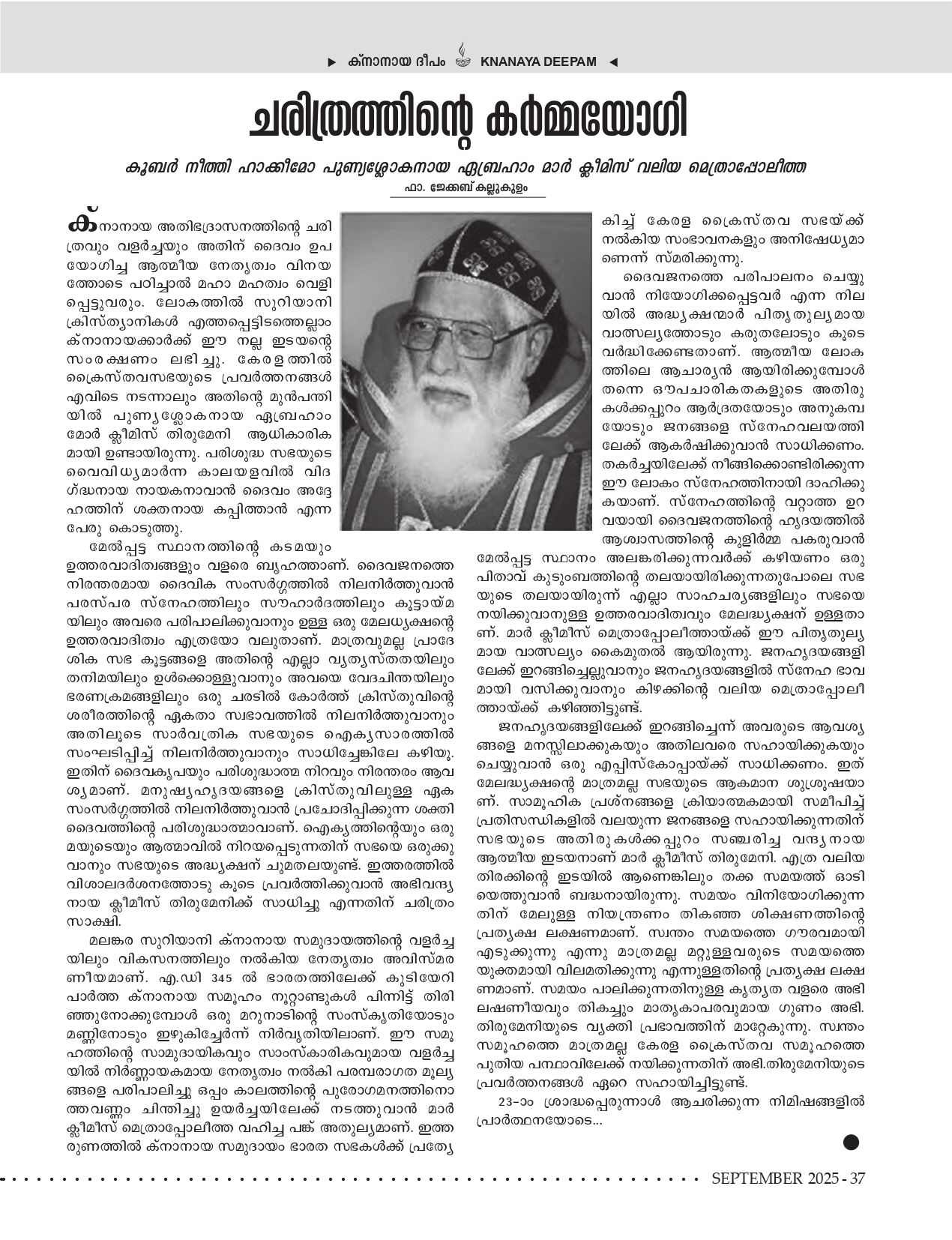 കര്ത്താവില് പ്രിയരെ, ക്രിസ്ത്യാനികള് അത്യുന്നതനായ ദൈവത്തിലും അതുല Editorial Message