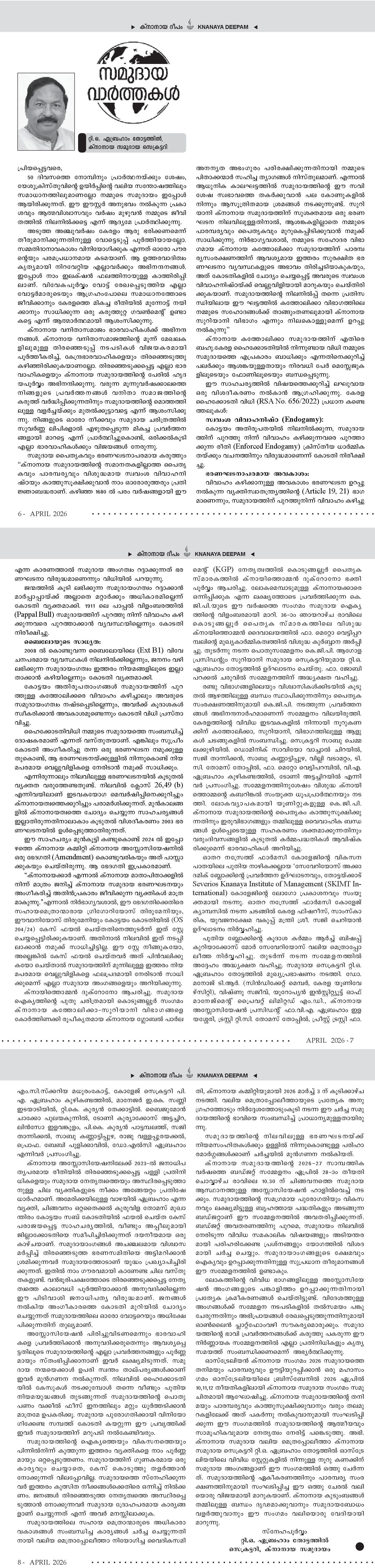 കര്ത്താവില് പ്രിയരെ കര്ത്താവിന്റെ ശരീരമാകുന്ന സഭയില് ദൈവം തന്റെ ശ Editorial Message