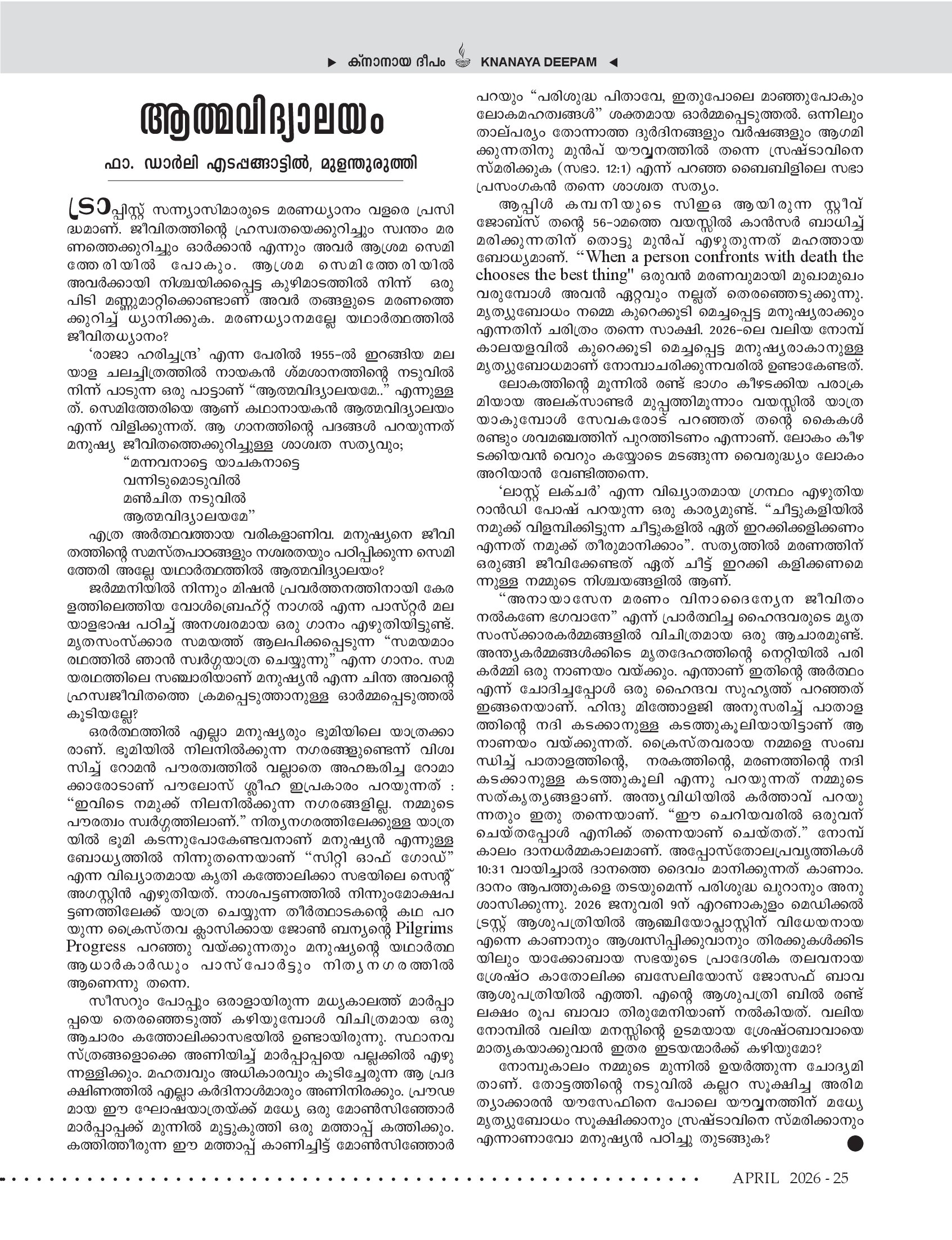 കര്ത്താവില് പ്രിയരെ, ലോകം ശാസ്ത്രീയമായി അനുദിനം പുരോഗമിച്ചുകൊണ്ട Editorial Message